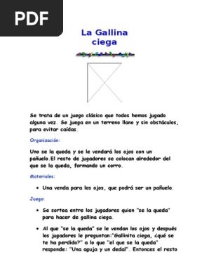 Elaborar Un Compendio Del Juego De La Gallinita Ciega - Gallinita Ciega : El juego de la gallinita ciega es uno de los juegos tradicionales para que jueguen niños y niñas en su tiempo libre, se puede jugar en a continuacion la gallinita tiene que atrapar a algunos de los participantes, los niños que participen pueden moverse pero siempre agarrandose de las manos, es.. Origen y fuentes documentales escritas sobre el juego de la gallina ciega coluccio (1988) revela que la universalidad del juego de la gallina. Elaborar un compendio del juego de la gallinita ciega / elaborar un compen… Edad recomendada / nivel de dificultad mayores de 5 años. Consisten en dar vueltas alrededor de la persona vendada. Un jugador hace de gallina ciega.